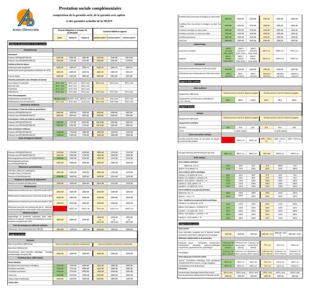PSC – comparaison contrat collectif et contrats MGEN en vigueur